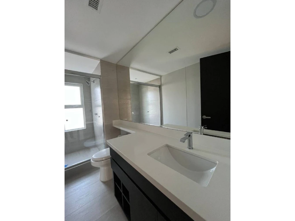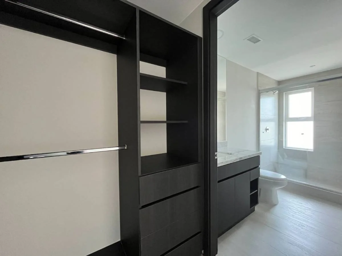 The second bedroom is spacious enough that it can easily accommodate a king-size bed. Its large window provides a beautiful view of the hills behind Palacio del Mar and floods the room with natural light. This bedroom also comes with a walk-in closet and a private bathroom.