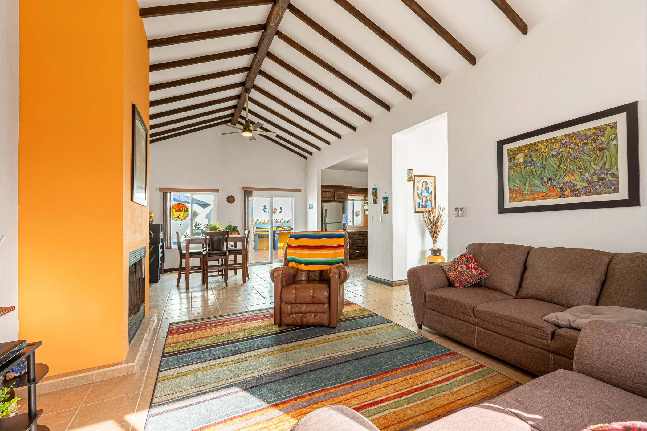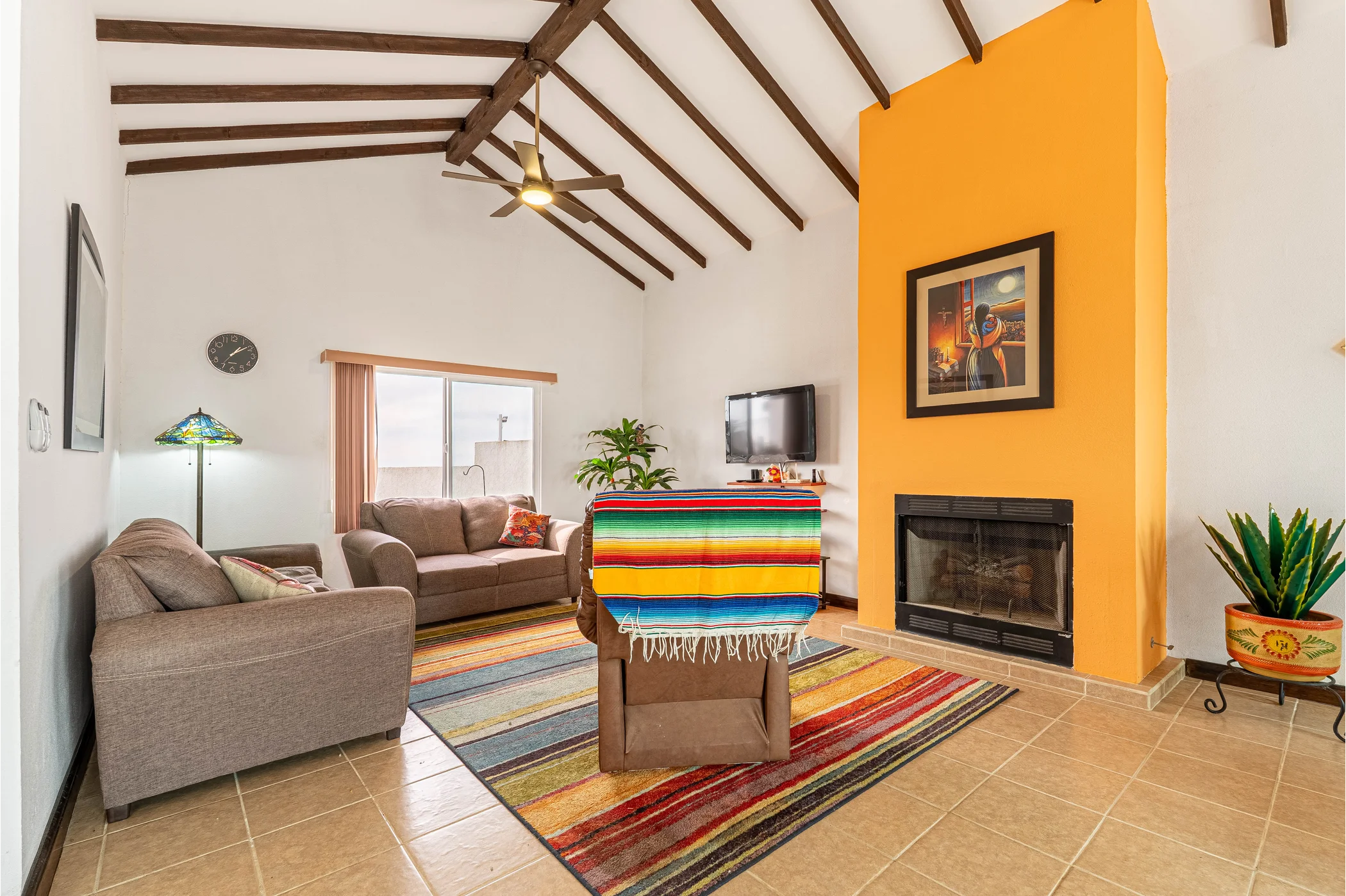 - Vaulted ceilings, gas fireplace, ceiling fans in every room