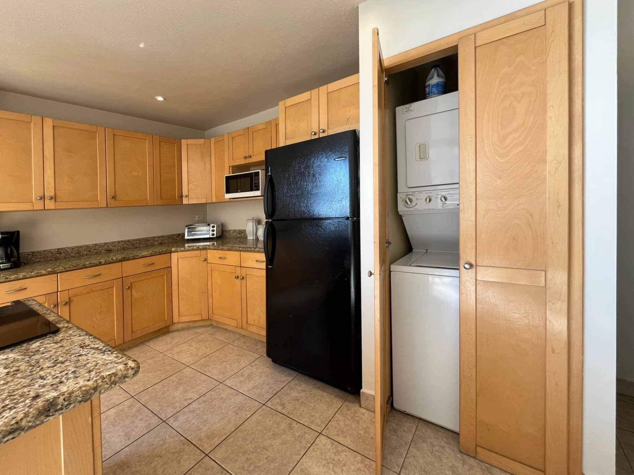 The kitchen includes granite countertops, custom cabinetry, and all major appliances. A stacked washer and dryer are included. There is also plenty of space for a home office—perfect for remote work. Sit down, relax, and enjoy the ocean right from your home.