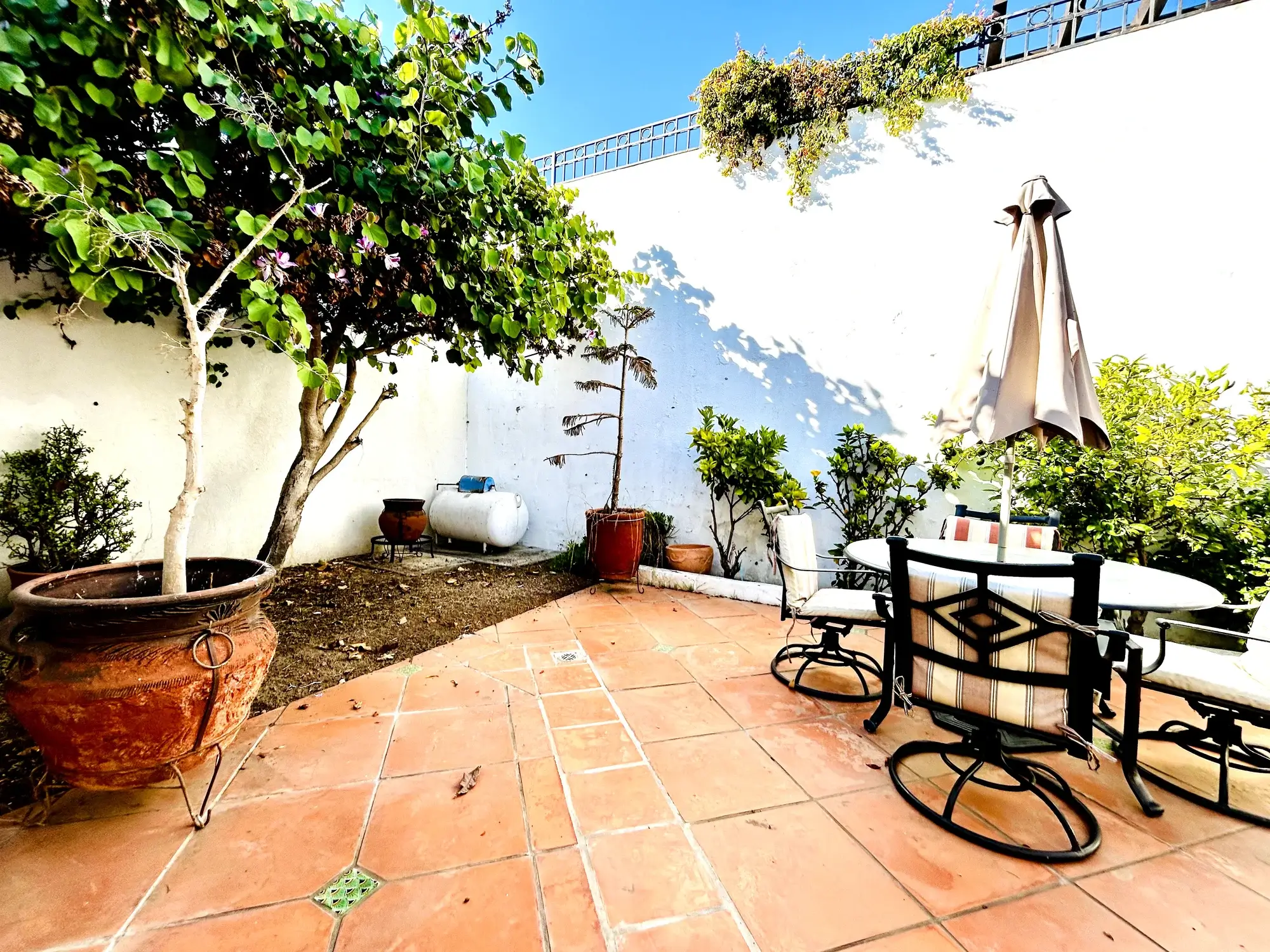 Outdoors, the backyard offers privacy and comfort with medium-sized trees, a pergola, garden seating, and a barbecue area—perfect for entertaining. From here, step up to the terrace, where an additional garden set and sun loungers invite you to relax and soak up sunny days.