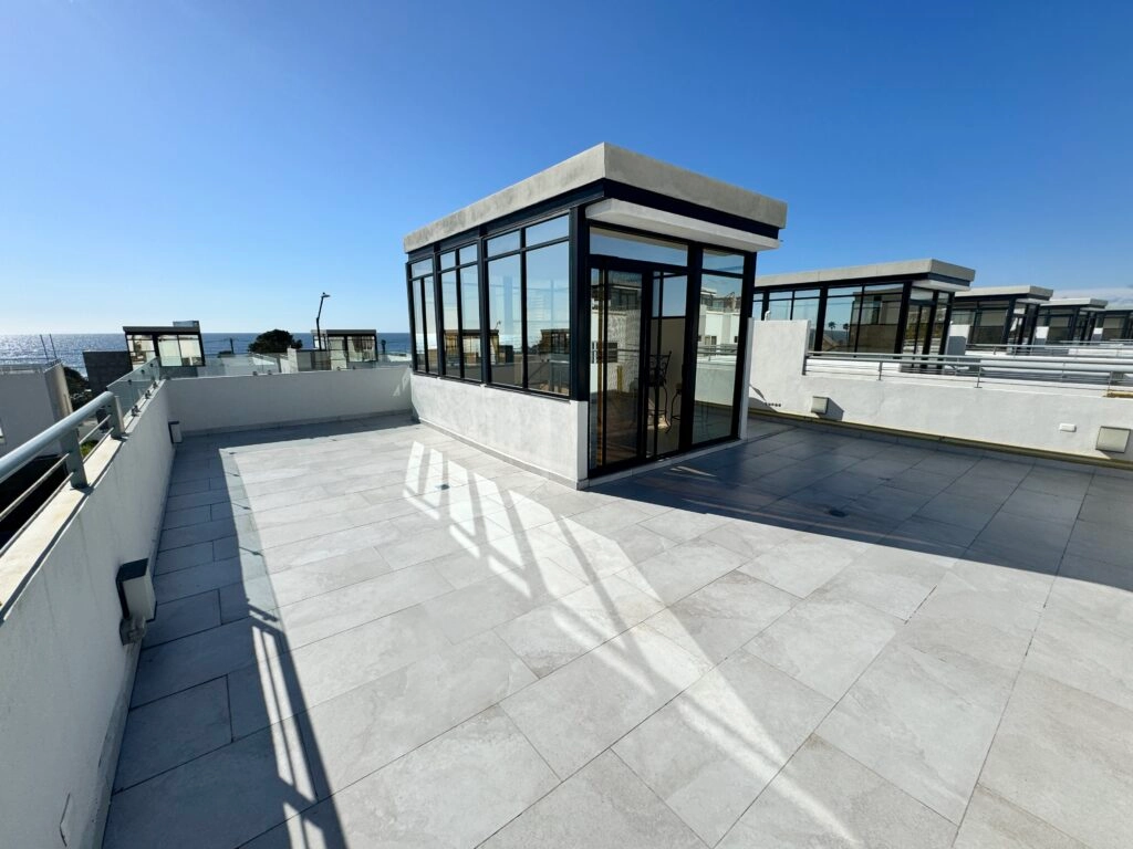 The top-floor terrace boasts a versatile enclosed area that can easily be adapted into a small gym, office, or bar, enriching your entertainment options. This level opens up to an expansive terrace perfect for outdoor furniture, a BBQ, or a firepit, providing an idyllic setting to relish the sea breeze and admire the breathtaking sunsets.